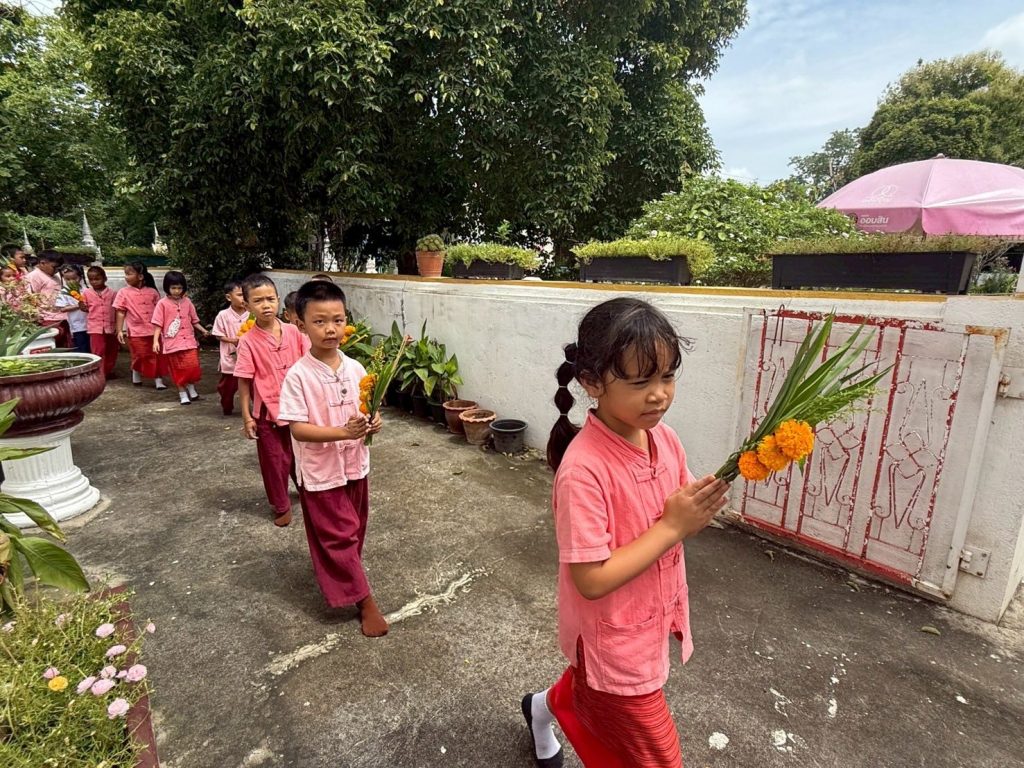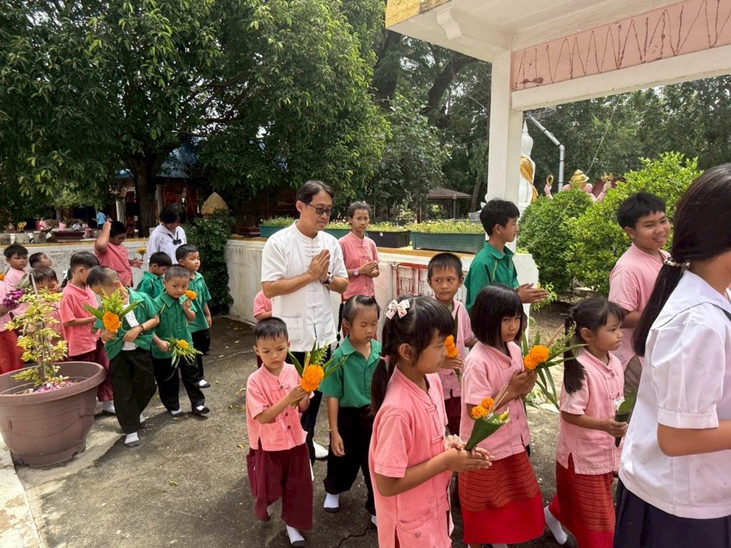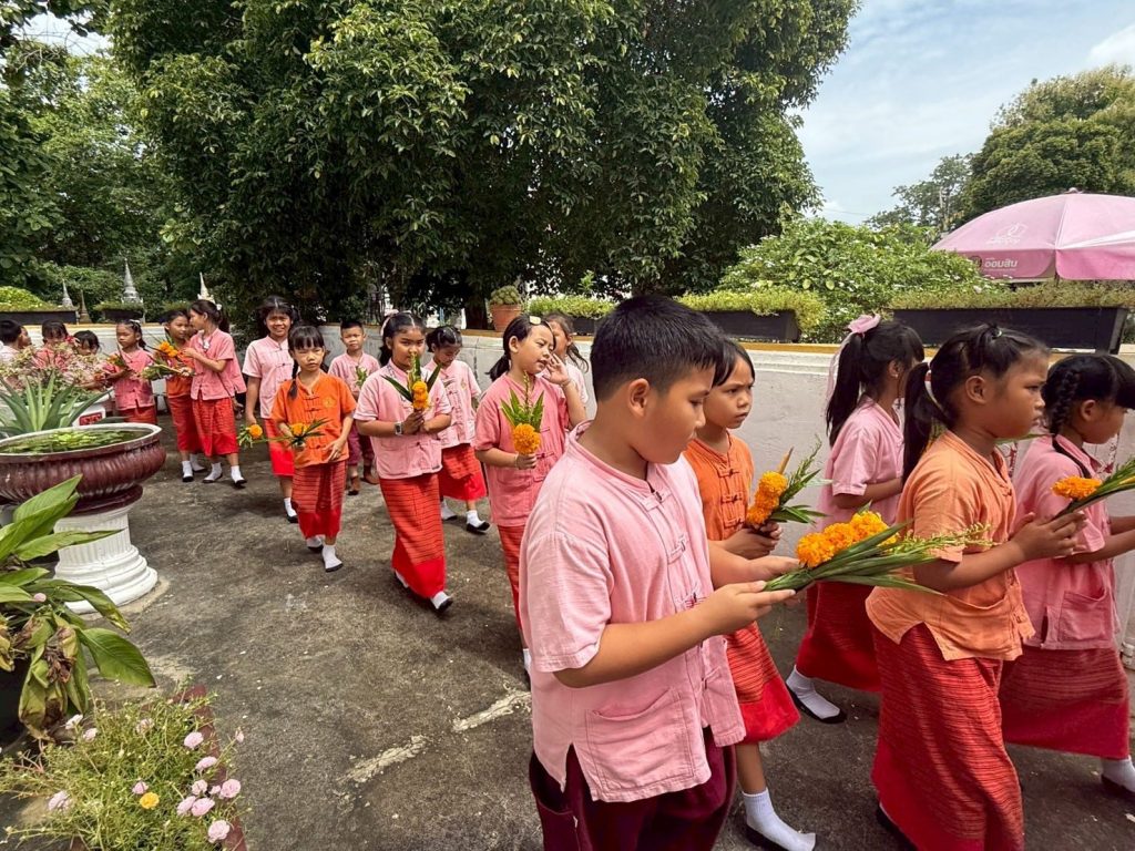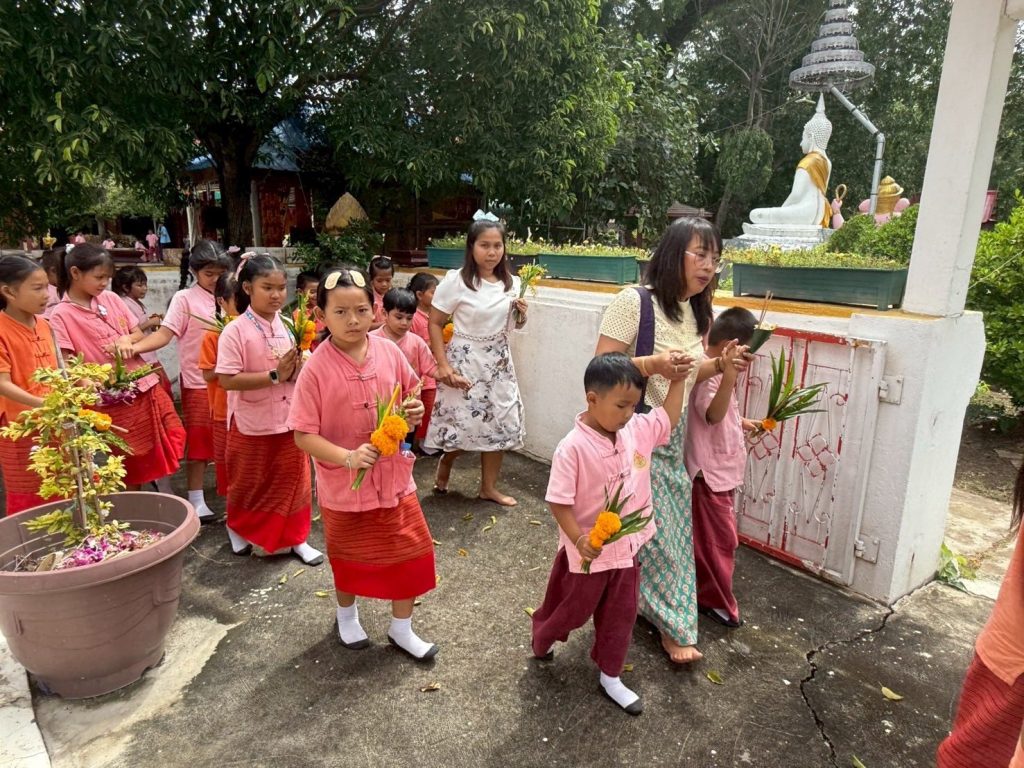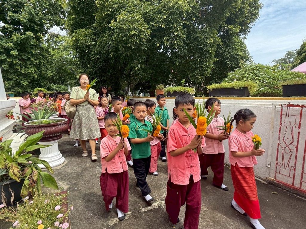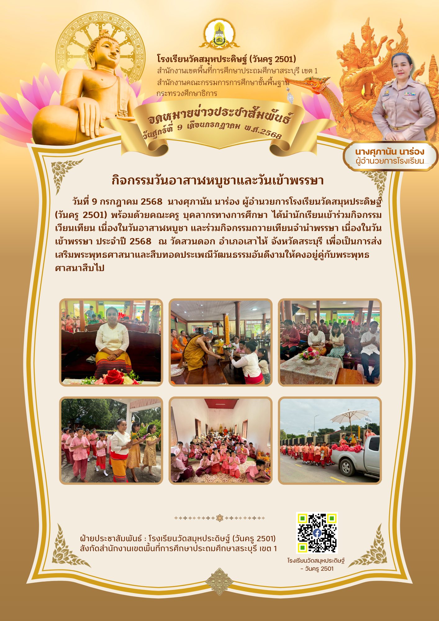 นางศุภานัน นาร่อง ผู้อำนวยการโรงเรียนวัดสมุหประดิษฐ์ (วันครู 2501) พร้อมด้วยคณะครู บุคลากรทางการศึกษา ได้นำนักเรียนเข้าร่วมกิจกรรมเวียนเทียน เนื่องในวันอาสาฬหบูชา และร่วมกิจกรรมถวายเทียนจำนำพรรษา เนื่องในวันเข้าพรรษา ประจำปี 2568 ณ วัดสวนดอก อำเภอเสาไห้ จังหวัดสระบุรี เพื่อเป็นการส่งเสริมพระพุทธศาสนาและสืบทอดประเพณีวัฒนธรรมอันดีงามให้คงอยู่คู่กับพระพุทธศาสนาสืบไป![]()