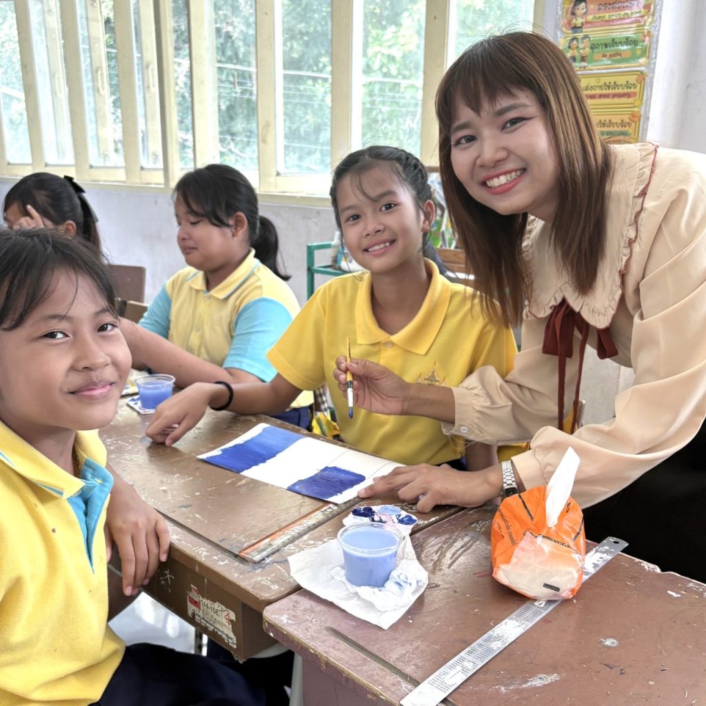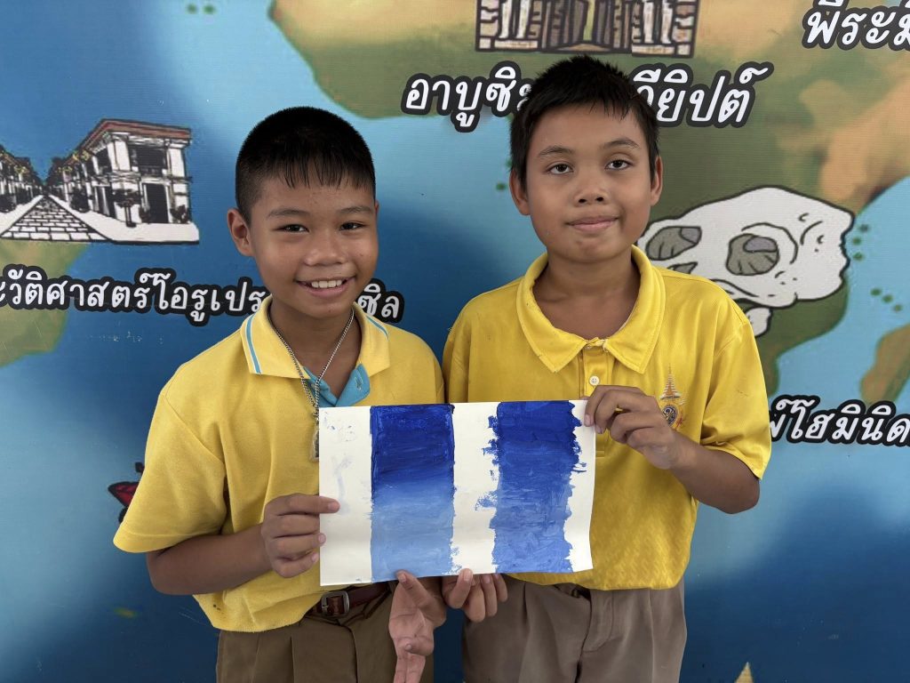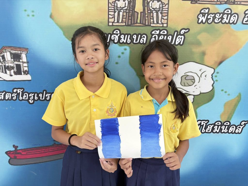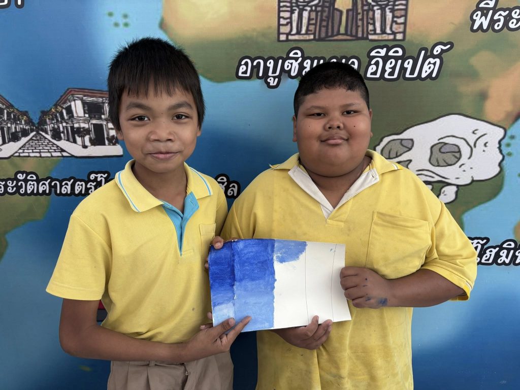 นักเรียนชั้นประถมศึกษาปีที่ 5 เรียนวิชาศิลปะ เรื่องการไล่น้ำหนักสีโปสเตอร์ ทำให้นักเรียนฝึกการควบคุมพู่กัน ควบคุมมือในการระบายสีให้เรียบเนียน ไม่เป็นรอยแปรง และฝึกกะปริมาณสีที่ใช้ในแต่ละครั้งให้เหมาะสม ฝึกสมาธิเเละต่อยอดในการทำงานศิลปะต่อไป