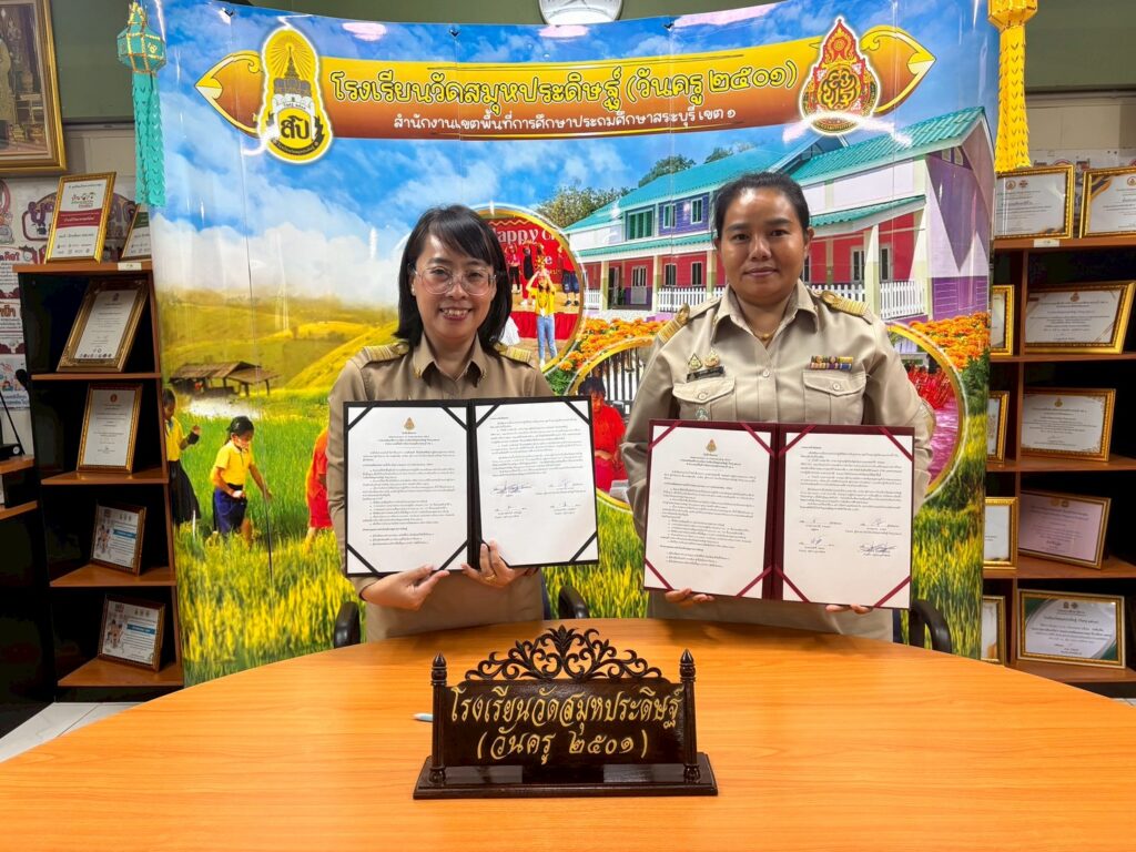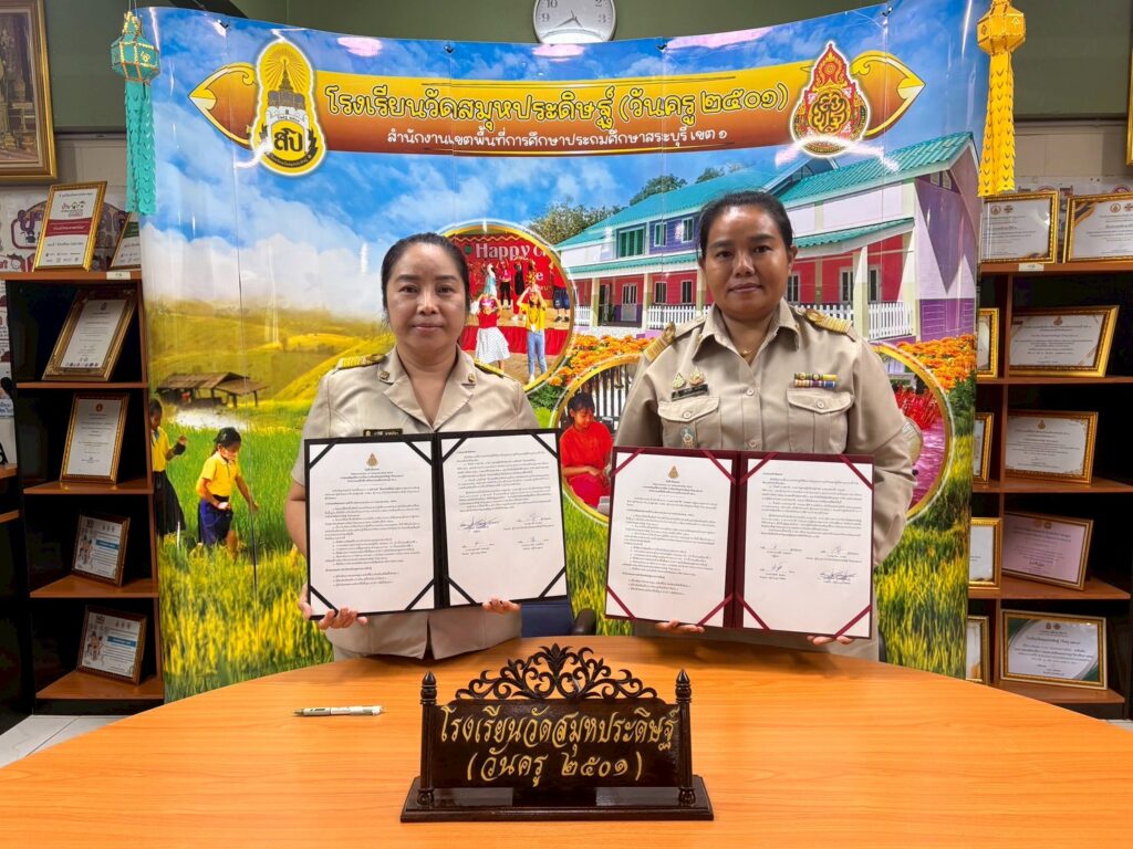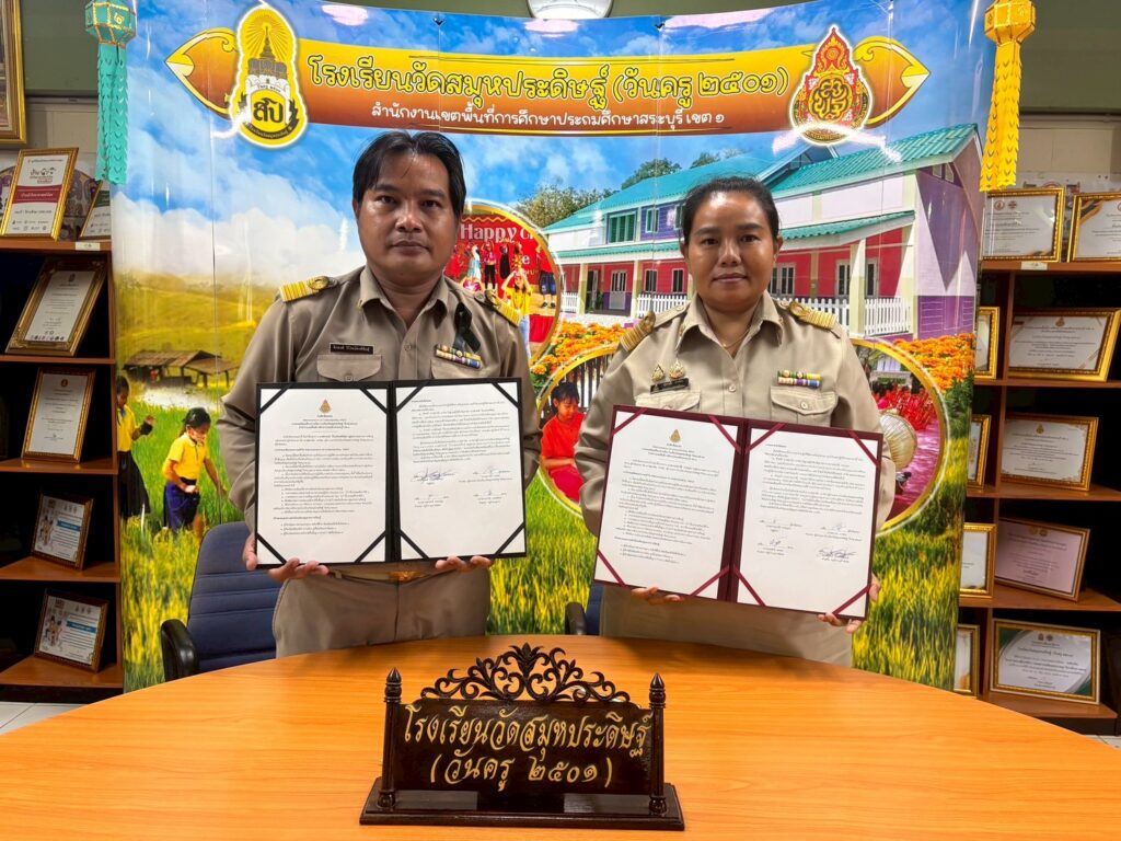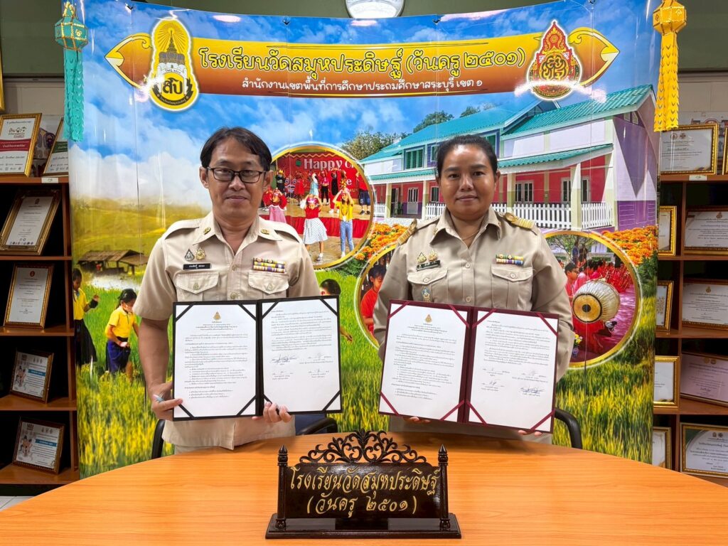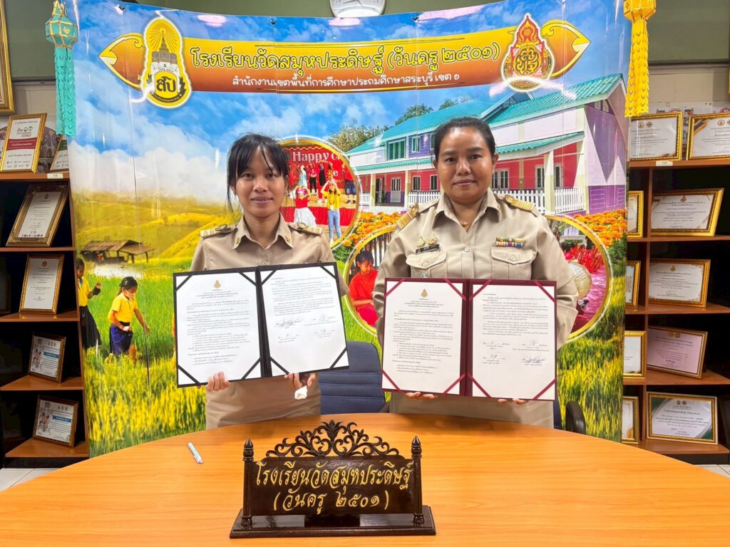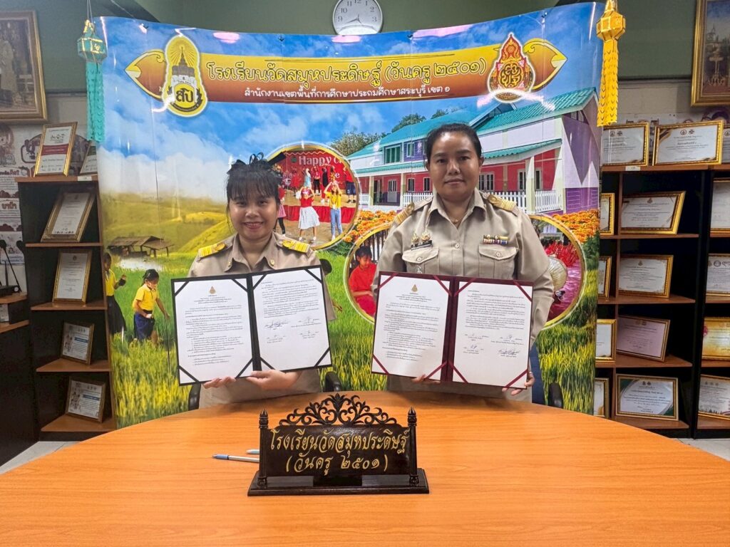 นางศุภานัน นาร่อง ผู้อำนวยการโรงเรียนวัดสมุหประดิษฐ์ (วันครู ๒๕๐๑) จัดพิธีลงนามบันทึกข้อตกลง (Memorandum of Understanding : MOU) พร้อมด้วยคณะครู ว่าด้วยความร่วมมือยกระดับประสิทธิภาพการบริหารจัดการและยกระดับคุณภาพการศึกษา เพื่อเป็นการการยกระดับคุณภาพ การศึกษา โดยเฉพาะด้านสมรรถะและผลสัมฤทธิ์ทางการเรียนของนักเรียนจึงร่วมมือกับครูผู้สอน จึงได้จัดทำข้อตกลงความร่วมมือในการยกระดับการพัฒนาคุณภาพการศึกษา และเป็นไปตามนโยบายมาตรฐานการศึกษารวมทั้งกลยุทธ์ จุดเน้นของสำนักงานคณะกรรมการการศึกษาขั้นพื้นฐาน และลงนามบันทึกข้อตกลงในการพัฒนางาน (Performance Agreement : PA) สำหรับข้าราชการครูและบุคลากรทางการศึกษา ประจำปีงบประมาณ พ.ศ.๒๕๖๙ ณ ห้องประชุม อาคาร ๑๑๑ ปี