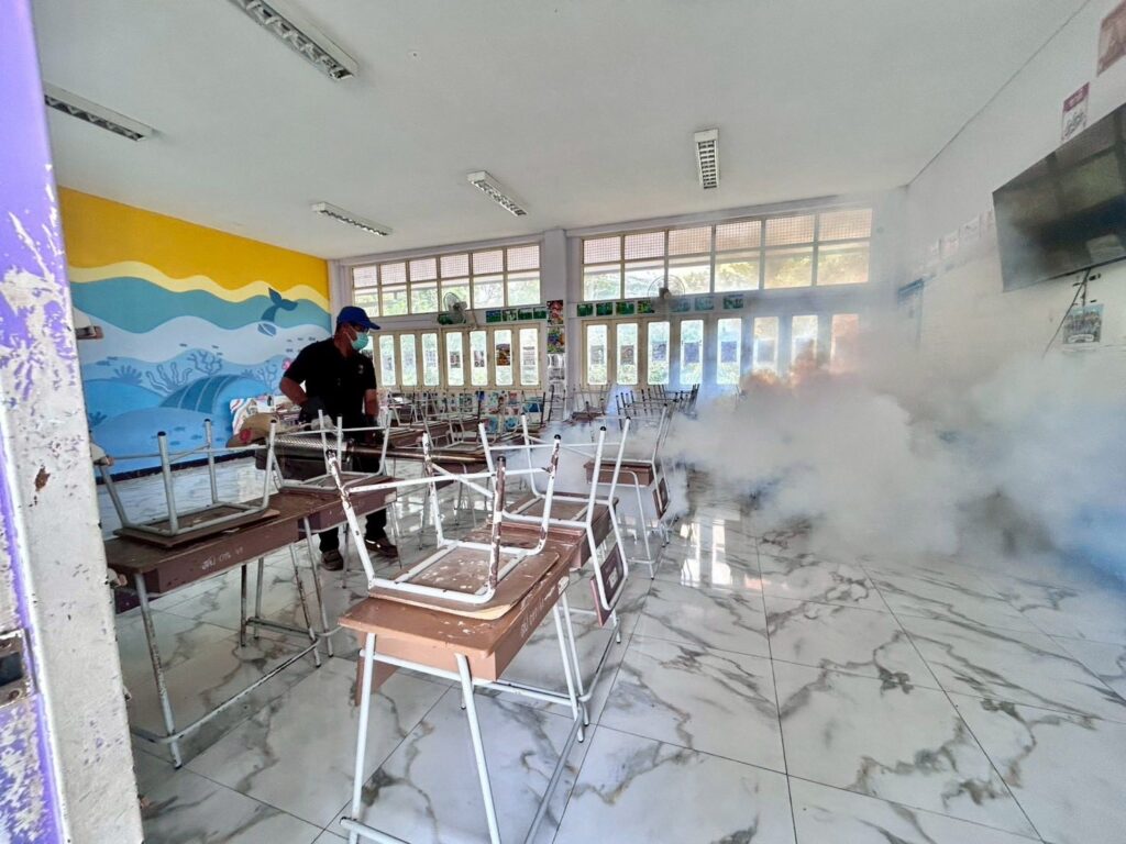เจ้าหน้าที่กองสาธารณสุขและสิ่งแวดล้อม เทศบาลตำบลสวนดอกไม้ ได้เข้ามาฉีดพ่นหมอกควันกำจัดยุงลาย เพื่อป้องกันและควบคุมการแพร่ระบาดของโรคไข้เลือดออกในโรงเรียน ภาคเรียนที่ 2 ปีการศึกษา 2568 โดยมี นางศุภานัน นาร่อง ผู้อำนวยการโรงเรียน งานอนามัยโรงเรียนและงานอาคารสถานที่ ให้การต้อนรับและอำนวยความสะดวก และดำเนินไปด้วยความเรียบร้อย![]()