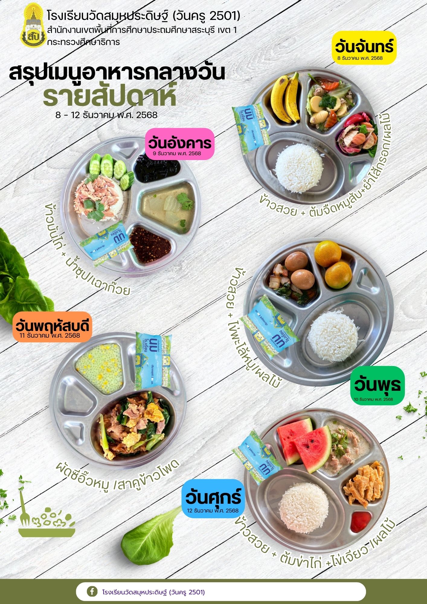 9 ธันวาคม พ.ศ. 2568 :ข้าวมันไก่ + น้ำซุป/เฉาก๊วย/นมโรงเรียน