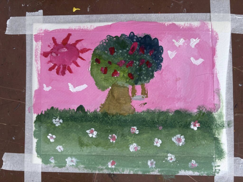 จุดประสงค์ : เพื่อนักเรียนเได้เรียนรู้การใช้สีโปสเตอร์เเละมีความสุขในการเรียน