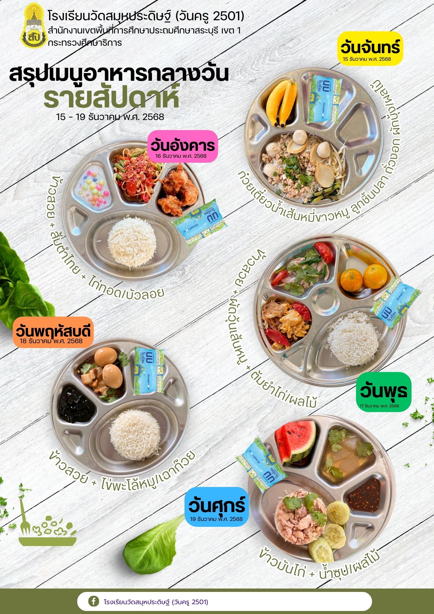 สรุปเมนูอาหารกลางวัน 15-19 ธันวาคม พ.ศ. 2568