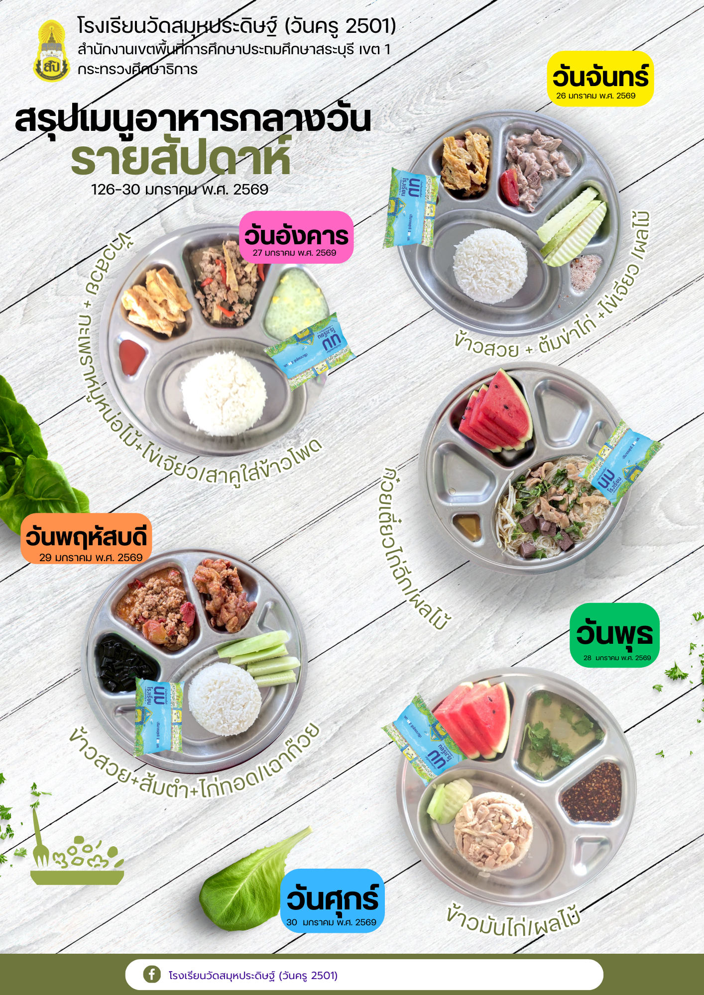 สรุปเมนูอาหารกลางวัน 26-30 มกราคม พ.ศ. 2569