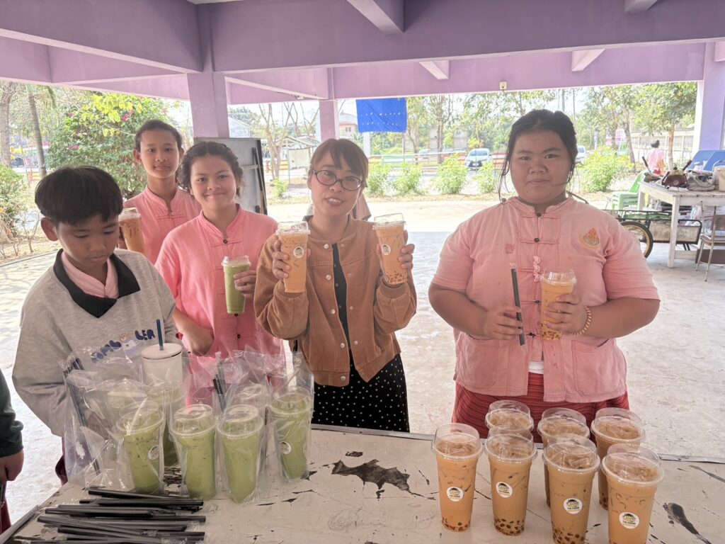ขอขอบคุณคุณป้าฝน ร้านขายของชำ หน้าวัดสวนดอก ที่ได้เลี้ยงชานมไข่มุกนักเรียน จำนวน 50 แก้วแก่นักเรียน