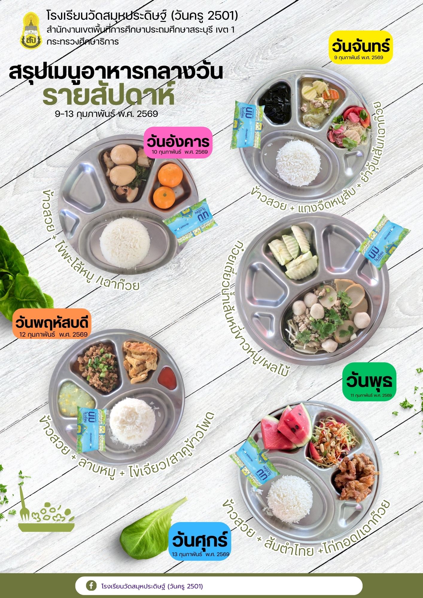 สรุปเมนูอาหารกลางวัน 9-13 กุมภาพันธ์ พ.ศ. 2569