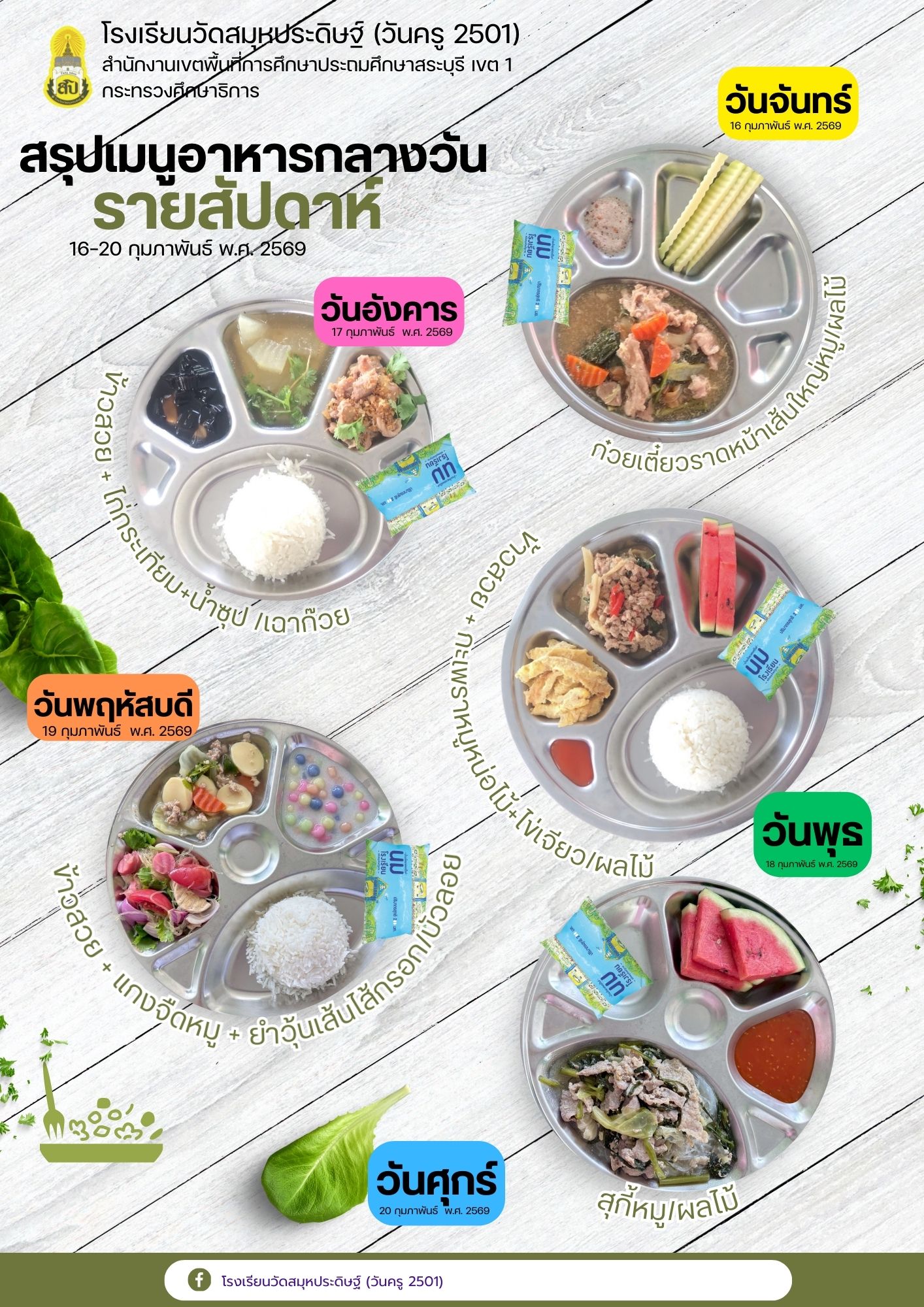 สรุปเมนูอาหารกลางวัน 16-20 กุมภาพันธ์ พ.ศ. 2569