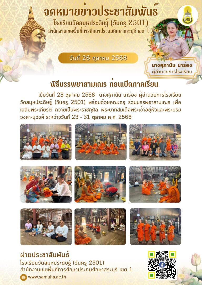 กิจกรรมของเรา ร่วมบรรพชาสามเณร เพื่อเฉลิมพระเกียรติ ถวายเป็นพระราชกุศล พระบาทสมเด็จพระเจ้าอยู่หัวและพระบรมวงศา-นุวงศ์23 ตุลาคม 20259 พฤศจิกายน 2025