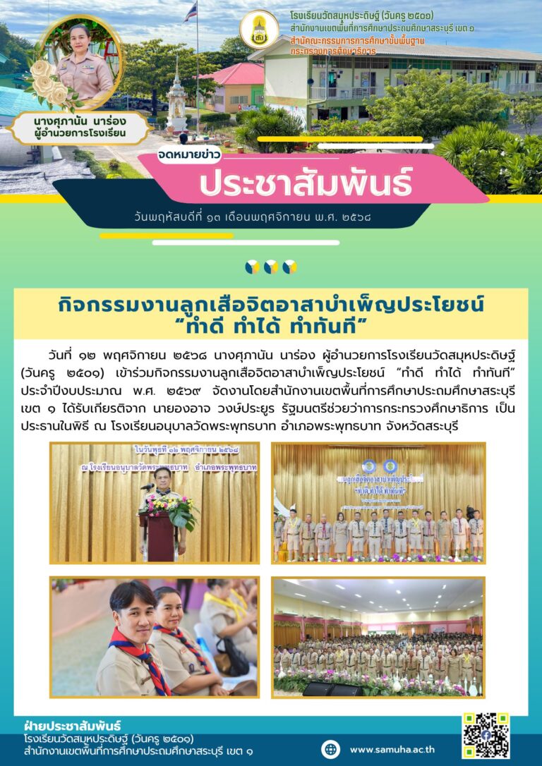 กิจกรรมของเรา กิจกรรมงานลูกเสือจิตอาสาบำเพ็ญประโยชน์ “ทำดี ทำได้ ทำทันที”12 พฤศจิกายน 202518 พฤศจิกายน 2025