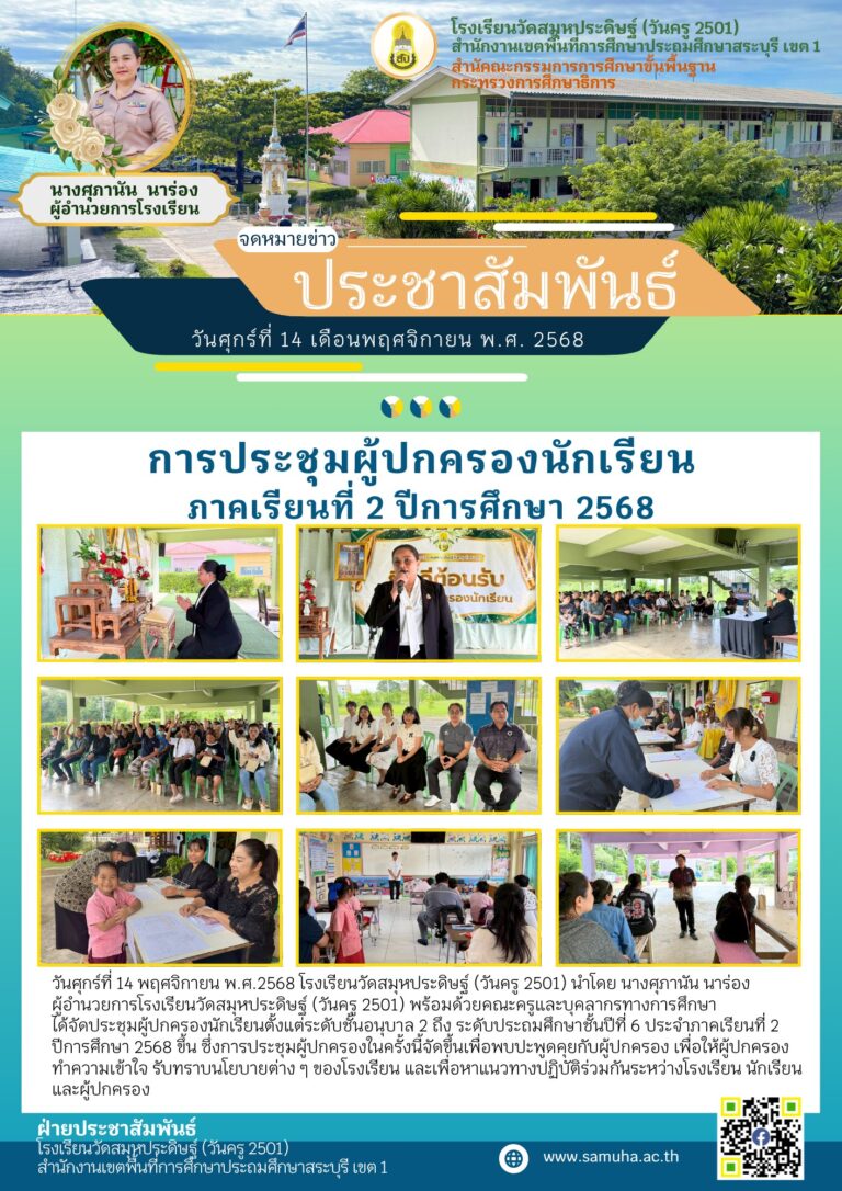 กิจกรรมของเรา จัดประชุมผู้ปกครองนักเรียน ประจำภาคเรียนที่ 2 ปีการศึกษา 256814 พฤศจิกายน 202518 พฤศจิกายน 2025