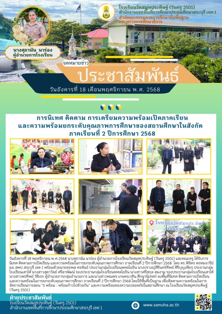 กิจกรรมของเรา การนิเทศ ติดตามการเปิดเรียน และความพร้อมในการยกระดับคุณภาพการศึกษา ภาคเรียนที่ 2 ปีการศึกษา 256818 พฤศจิกายน 202518 พฤศจิกายน 2025