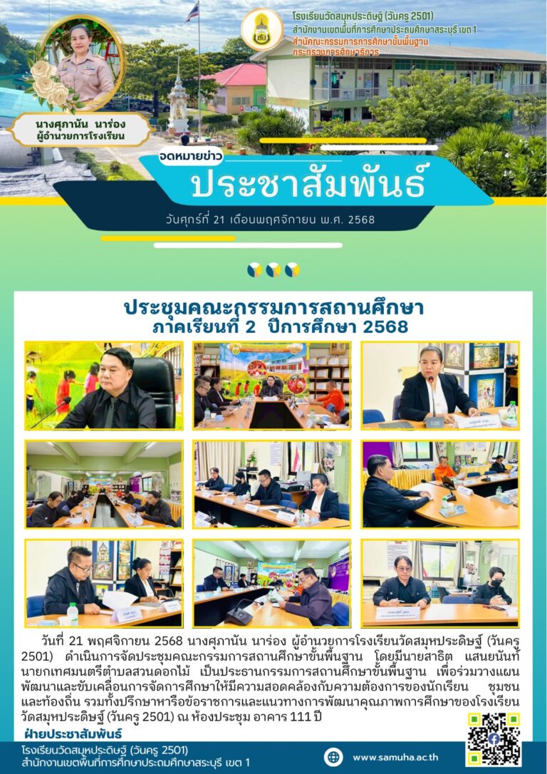 กิจกรรมของเรา ประชุมคณะกรรมการสถานศึกษาขั้นพื้นฐาน ภาคเรียนที่ 2 ปีการศึกษา 256821 พฤศจิกายน 202526 พฤศจิกายน 2025