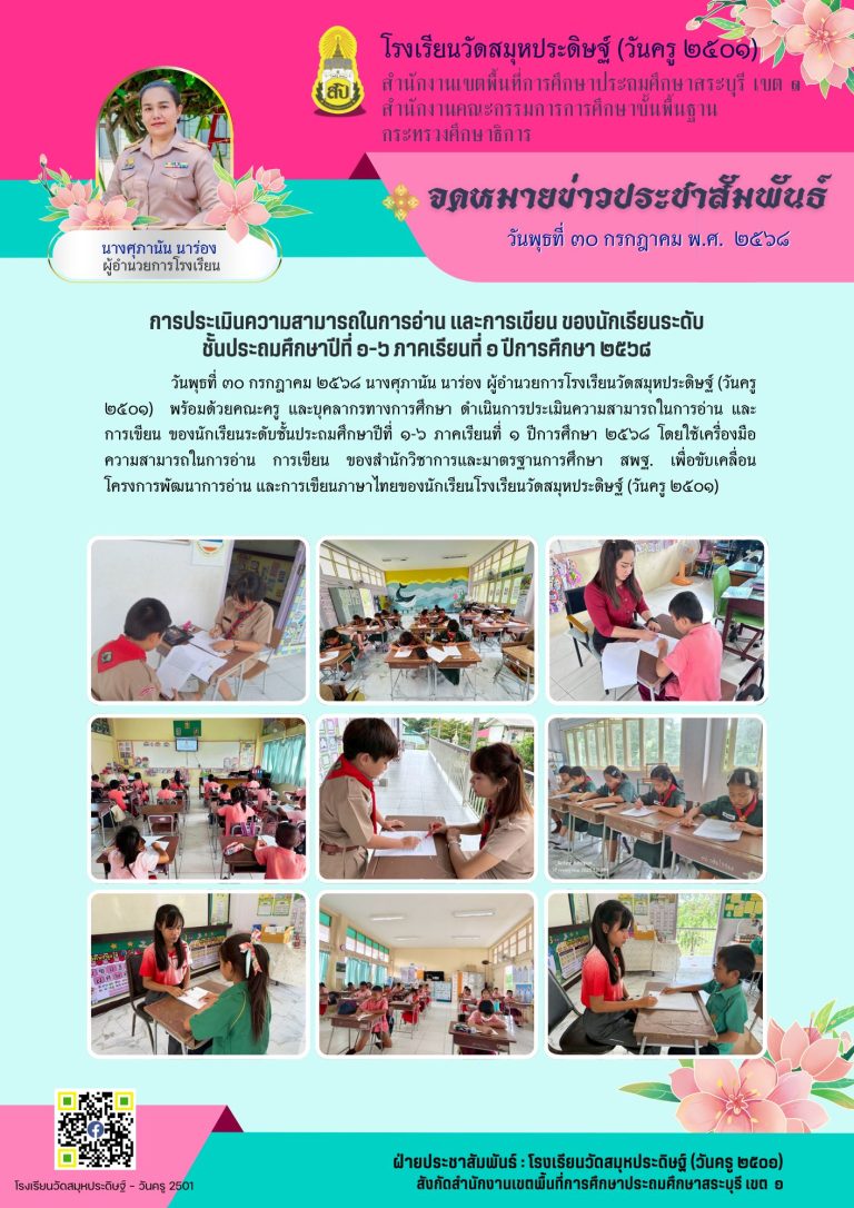 กิจกรรมของเรา การประเมินความสามารถในการอ่าน และการเขียน ของนักเรียนระดับชั้นประถมศึกษาปีที่ ๑-๖ ภาคเรียนที่ ๑ ปีการศึกษา ๒๕๖๘30 กรกฎาคม 202518 สิงหาคม 2025